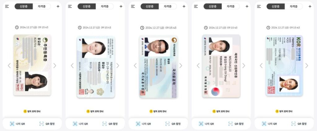 이 서비스들은 공식 인증 절차를 기반으로 만들어졌기 때문에 법적 효력이 있는 신분 확인 수단으로 인정돼요.